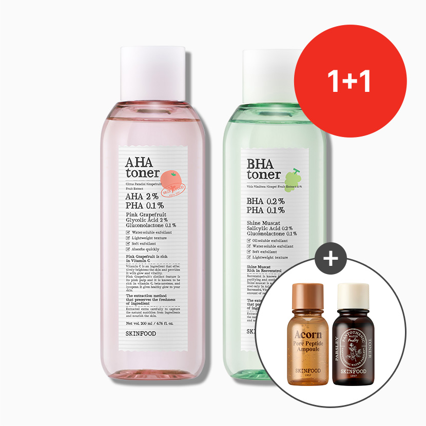 [1+1] 핑크자몽 AHA 토너 & 샤인머스캣 BHA 토너 총 2개 (에이콘 앰플&판토테닉 토너 14ml 증정)