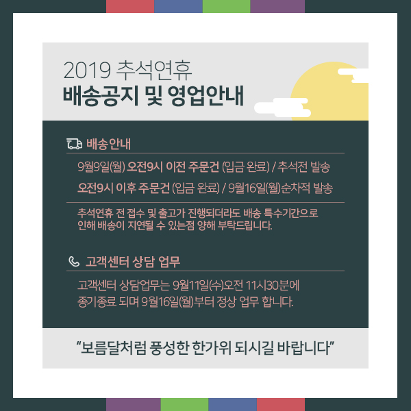 [공지사항] 추석연휴 배송일정 안내